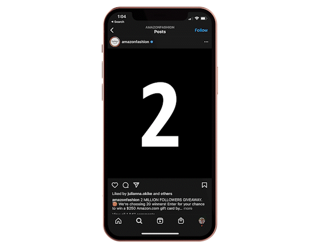 Tasked with creating an engaging organic social post to celebrate 2 million followers on Amazon Fashion’s Instagram. This post was used as a catalyst for a giveaway, so it needed to be eye-catching and exciting.